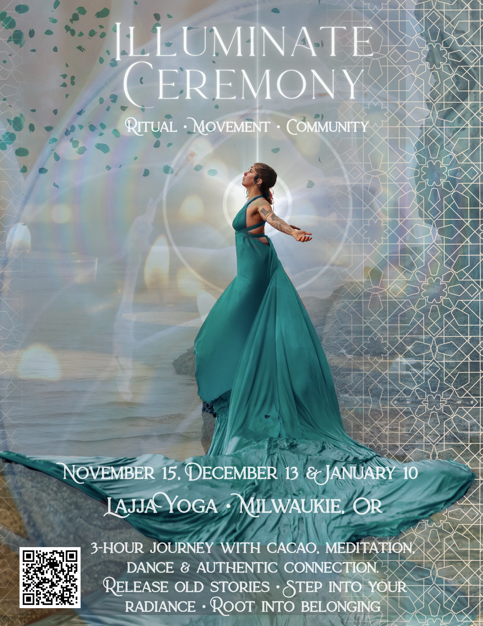 A guided journey of ritual, somatic movement, ecstatic dance, art/journal integration & community connection…designed to help participants release old patterns, reconnect with their essence, and step fully into their radiance.